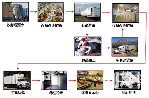 这个环节主要是对食品的冷却储藏和冻结储藏,以及水果蔬菜等食品的气调贮藏,冷冻储藏主要是保证食品在储存和加工过程中的低温保鲜环境。在此环节主要涉及各类冷藏库/加工间、冷藏柜、冻结柜及家用冰箱等等。